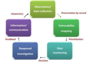 This interdisciplinary approach has brought, first, tools for observation and evaluation of the archaeological sites vulnerability (VEF: Vulnerability Evaluation Form; which is the scientific core of the ALeRT project), then sites monitoring and heritage management approaches. It allows setting up watchfulness maps, strategical approach and adapted actions on various scales (from local to regional).