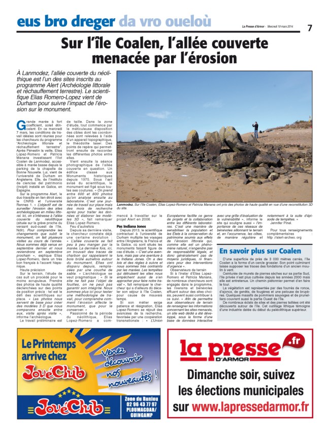 LOPEZ-ROMERO E., MANANA-BORRAZAS P., DAIRE M.-Y., GUIMIL-FARINA A., 2014. « The eSCOPES Project: preservation by record and monitoring at-risk coastal archaeological sites on the European Atlantic façade ». Antiquity, 339.